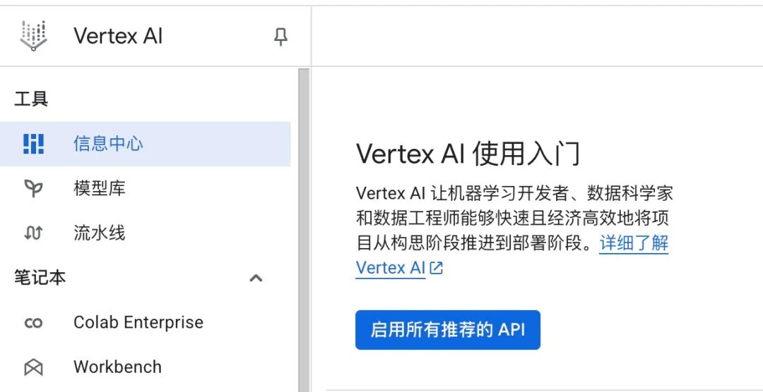 点击【启用所有推荐的 API 】之后你就可以用 Vertex AI 的相关功能了。